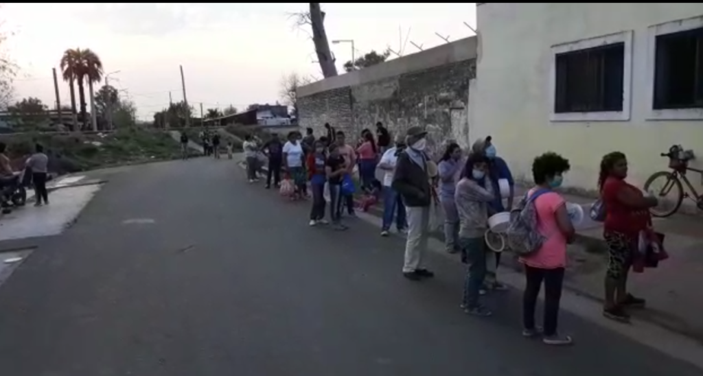 «Hoy ya abrimos el comedor con ayuda de la municipalidad», dijo el cura párroco de la Gruta. El cura explicó que muchos voluntarios donaron mercadería y la Municipalidad aportó la carne para reabrir.
