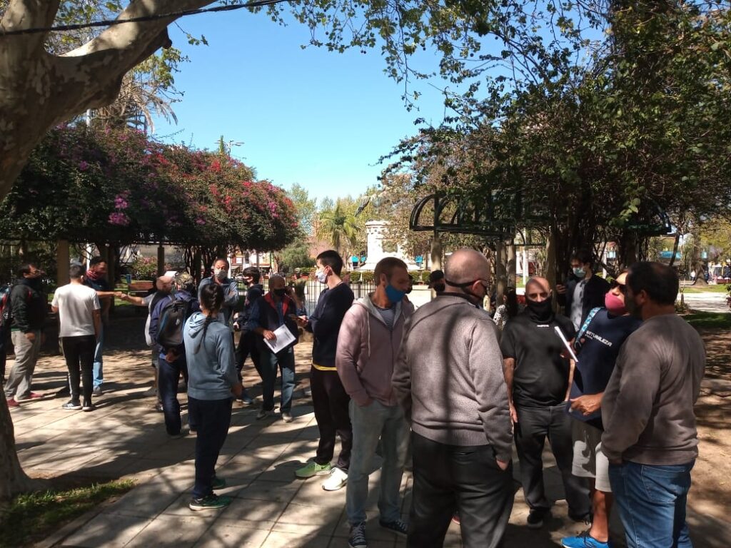 Propietarios y trabajadores de canchas de fútbol 5, jardines maternales y casas de cumpleaños y eventos concentraron en la plaza 25 de Mayo frente a la Municipalidad a seis meses del cese de sus actividades por la pandemia.