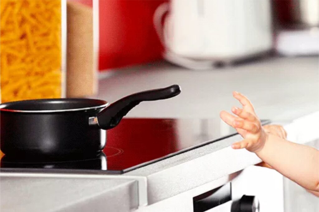 · No tener a bebés en brazos al tomar una bebida caliente o cocinar. Utilizar las hornallas de atrás o evitar que los mangos de las ollas y sartenes estén al alcance de la mano de los niños.