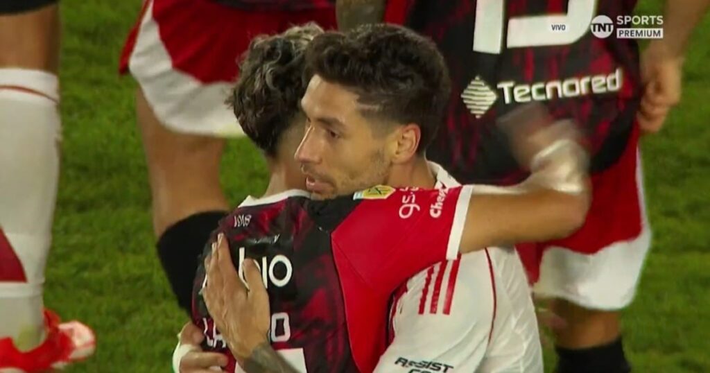El “Cachete, Cachete” bajaba de las tribunas. Desde todos los sectores del Monumental los hinchas de River le agradecían por esa aparición agónica para darles el triunfo sobre el final. Abajo, en el campo, había un reconocimiento muy especial para Gonzalo Montiel. De sus compañeros, claro. Y también de sus recientes rivales…