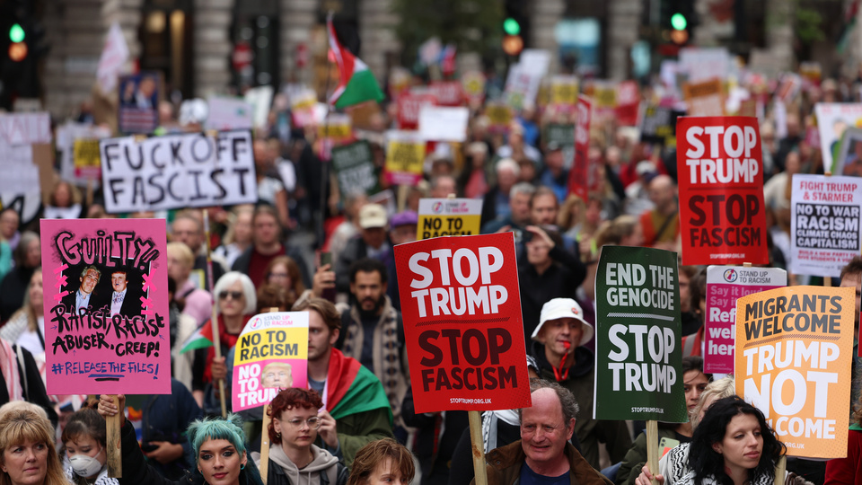 Miles de personas se concentraron en el centro de Londres para protestar ante la visita de Estado que el presidente de Estados Unidos, Donald Trump, empezó este miércoles al Reino Unido. Con carteles, disfraces, cánticos y banderas –en su mayoría de Palestina–, e incluso globos y muñecos con la cara del mandatario, los asistentes se mostraron en desacuerdo con la presencia del mandatario norteamericano y los honores con los que fue recibido en el castillo de Windsor, a las afueras de la capital, por el rey Carlos III.