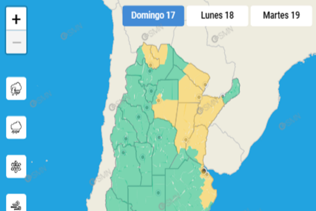 El Servicio Meteorológico Nacional (SMN) comunicó que está vigente una alerta amarilla por tormentas para este domingo en la provincia de Entre Ríos. El pronóstico alcanza a todos los departamentos, exceptuando Victoria y Gualeguay.