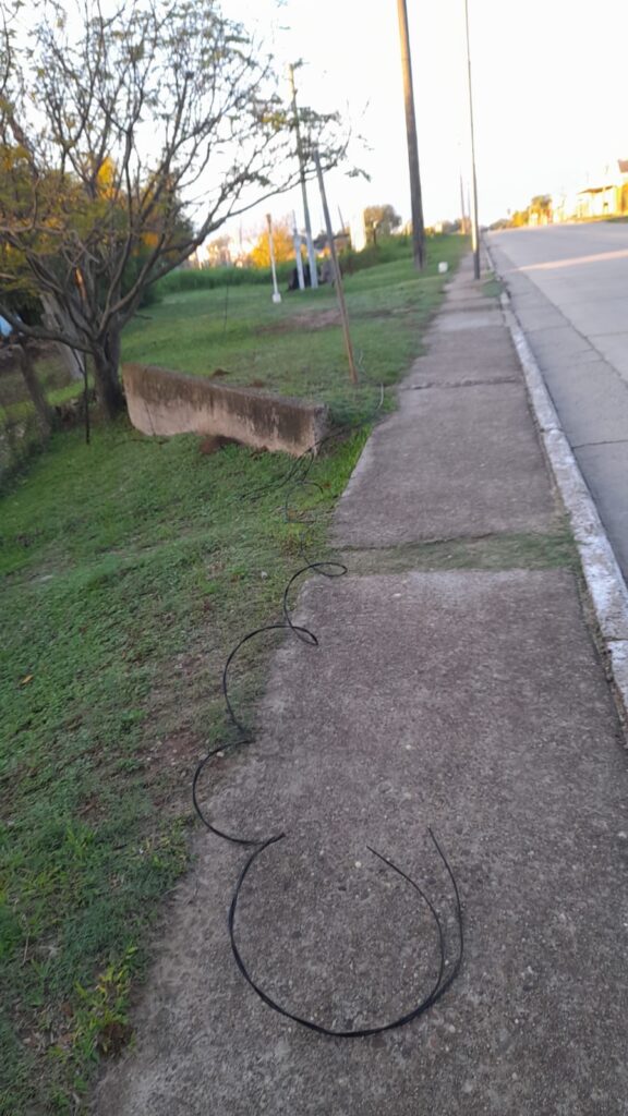 Este domingo siendo las 07:40 hs. y en circunstancias en la que un funcionario de la Guardia Especial, se dirigía a tomar el servicio, llegado a la intersección de Calle Próspero Bovino y Moulins, observa a un masculino sustrayendo cables del alumbrado público.
