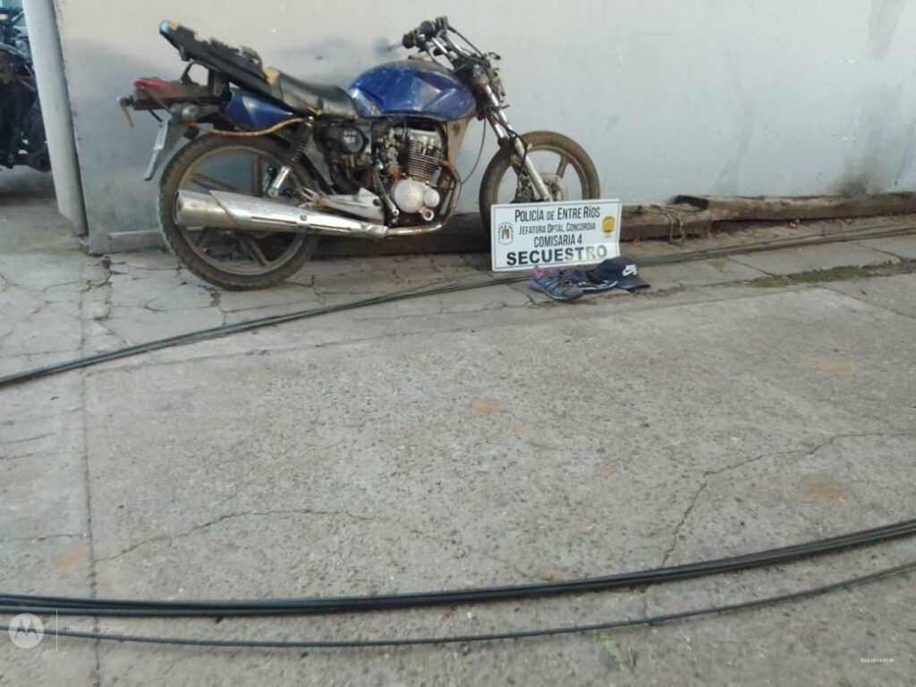 Rápidamente emprendieron la búsqueda de los malvivientes; pudiéndolos encontrar a los pocos minutos en calle Nogoyá y J.J. Valle, se trataba de dos masculinos que se conducían en una moto y tenían en su poder los elementos faltantes del Corralón 5 varillas de hierro del 8, de 12 mts..