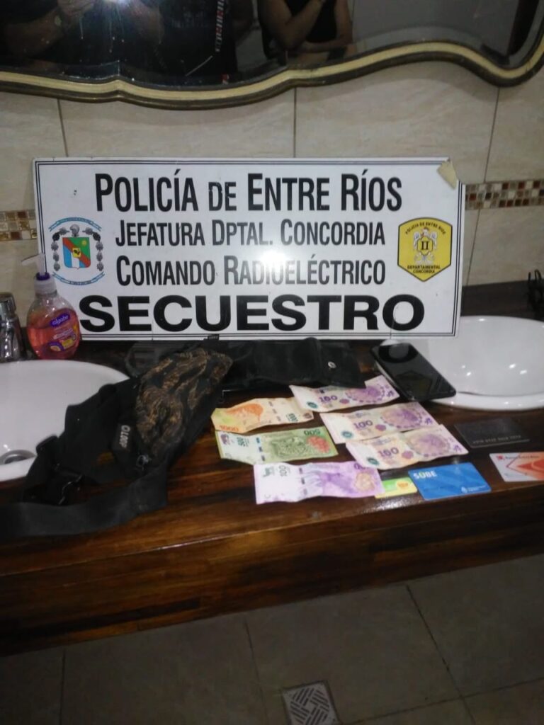 En horas de la madrugada de este domingo, se tomó conocimiento que en el casino de calles Roque Sáenz Peña y Pellegrini, un masculino en el sector de cajas donde pagan los premios, sustrajo dinero de la caja registradora, siendo advertido por el personal de adicional, quien alertó al Comando Radioeléctrico. Luego de una persecución que finalizó en el baño de un restaurante de la zona, se logró aprehender, recuperándose la totalidad del dinero (Un millón de pesos) . Posteriormente este sujeto exhibió lo que contenía en el interior de una riñonera ( dinero en efectivo y una tarjeta de débito del Banco Nuevo E. Ríos a nombre de una mujer y una billetera color negra). Luego se constató que estos elementos fueron arrebatados a una mujer en la víspera, habiéndo realizado la correspondiente denuncia.
