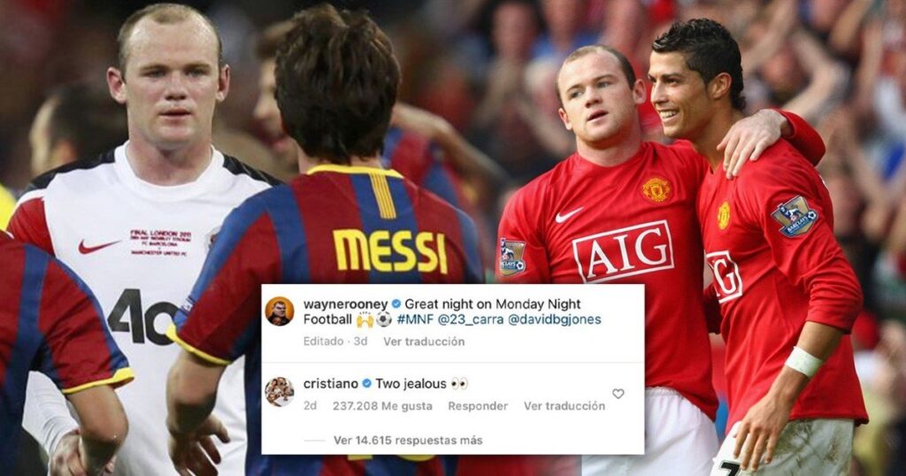 “Cristiano era tan bueno y tan jodidamente molesto al mismo tiempo. Probablemente no sea tan bueno ahora, pero seguramente siga siendo igual de molesto”, dijo Rooney hace unos días. Ahora Wayne habló en el programa Monday Night Football, de Sky Sports, y subió una foto junto a Jamie Carragher, ex jugador del Liverpool, y el presentador David Jones. ¿Qué hizo CR7? Comentó: “Dos celosos”.