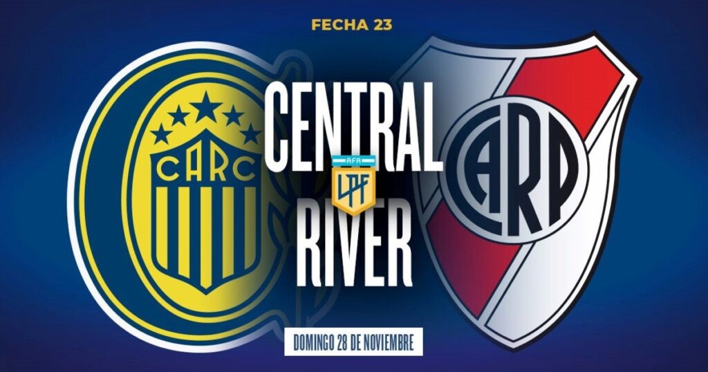 Continua la acción en la Liga Profesional de Fútbol. Este domingo, por la fecha 23, el flamante campeón River, visita a Rosario Central en el Estadio Gigante de Arroyito. Agendá a qué hora juegan, las posibles formaciones y la TV en vivo de este partidazo.