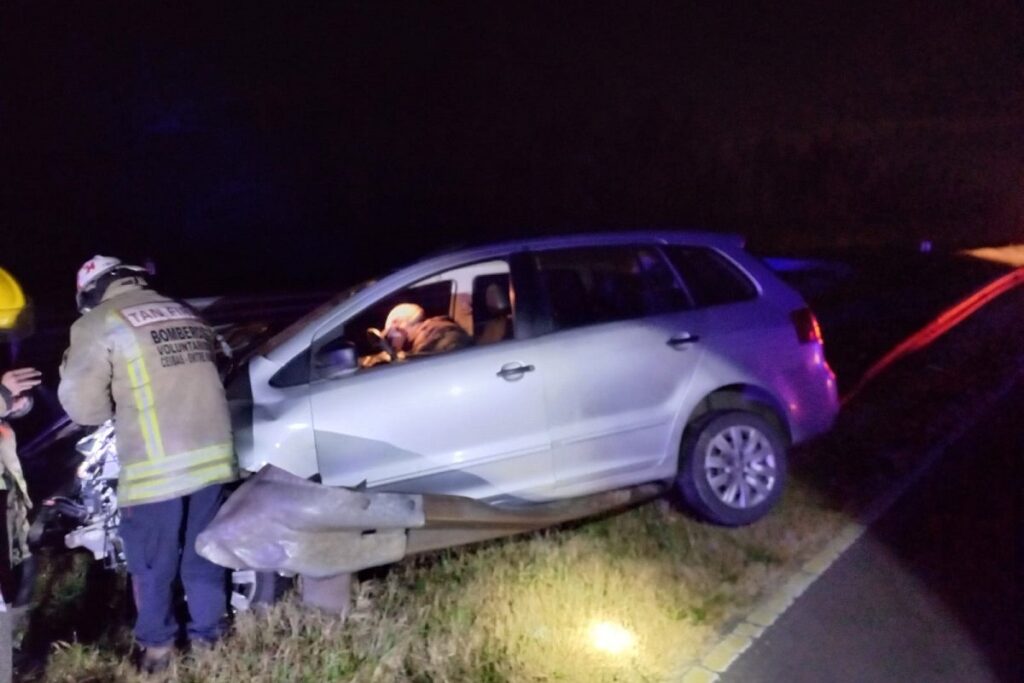 Fue por el choque de un auto Volkswagen Suran contra guardarraíl quedando el auto sobre la barrera.