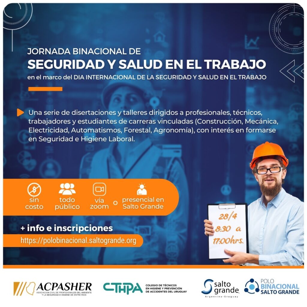 Como parte de la agenda de formación que viene impulsándose desde Salto Grande a través del Polo Binacional, el próximo jueves, a las 08:30 horas inicia la primera “Jornada Binacional de Seguridad Industrial”, con participación de técnicos, colegio de profesionales y representantes del sector.