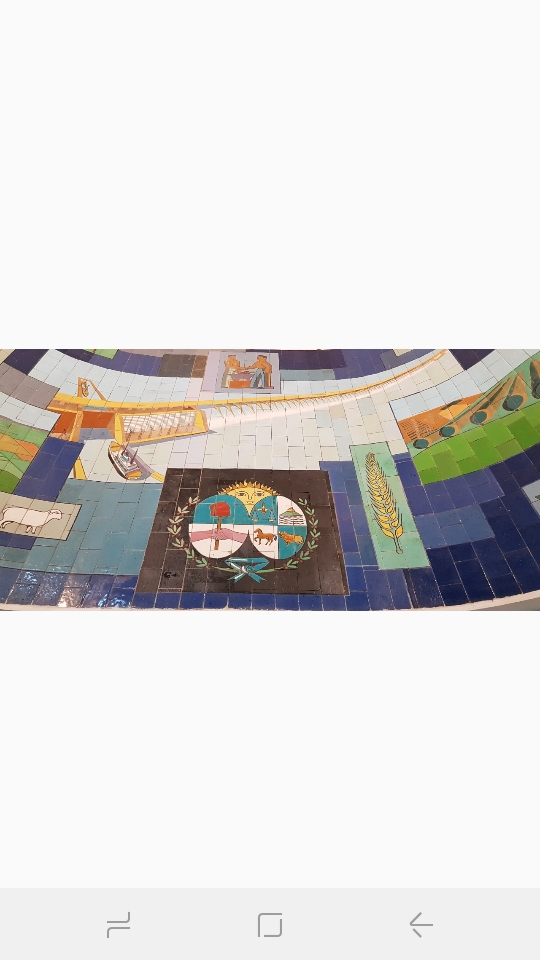 El mural simboliza la confraternidad Argentina Uruguaya en su centro, sobre ella dos figuras hermanadas en el trabajo, y en la parte inferior los escudos argentino y uruguayo.