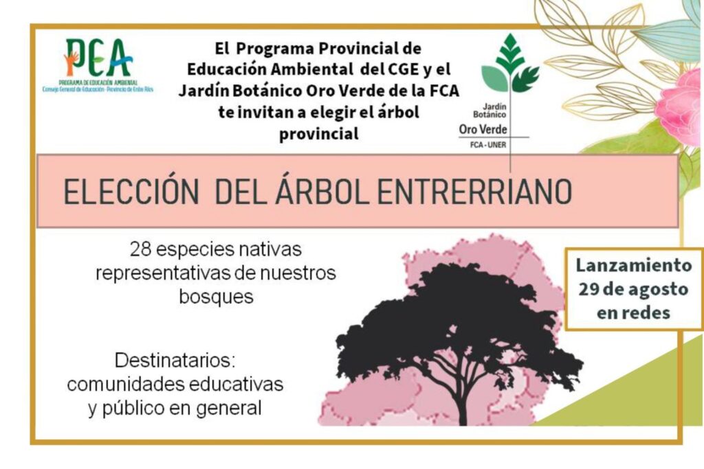 A través del Programa de Educación Ambiental (CGE) y el Jardín Botánico de Oro Verde (FCA-UNER), ambos organismos se comprometieron a promover la elección del representante arbóreo de la provincia, que definirán docentes, estudiantes y público en general. La iniciativa, declarada de interés educativo, consistirá en la elección de un árbol característico y representativo de la biodiversidad de Entre Ríos.