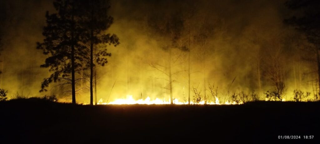 De nuevo de noche y en las afueras, esta vez en zona de Capitán Rojas y Avenida Frondizi se quemaron unas 20 hectáreas aproximadamente de pastizales y cortinas de pinos.