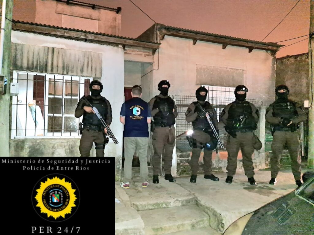 Funcionarios policiales de la División Toxicología de Concordia, División Toxicología de San Salvador, Grupo Especializado de Concordia y Grupo Especializado de San Salvador, en horas de la noche de ayer llevaron a cabo 02 allanamientos en la ciudad de Concordia conforme a mandamientos judiciales del Juzgado de Garantías a cargo del Dr. Ledesma, y en conocimiento de fiscalía a cargo del Dr. Zabaleta.