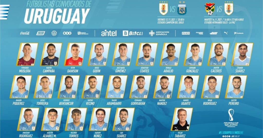 La lista de Uruguay para la doble fecha de Eliminatorias.