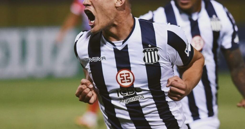 La figura de Talleres festeja el tanto de Matías Esquivel. (Prensa Talleres)