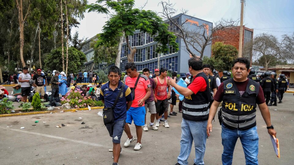 Estaban alojados en el lugar desde hace tres días. Los estudiantes les abrieron las puertas de la universidad con la oposición del rectorado. Una tanqueta derribó una puerta de rejas y un numeroso contingente policial ingresó violentamente. Hubo más de 200 detenidos. Los policías armados con fusiles también entraron con violencia a la residencia universitaria. Congresistas de izquierda llegaron hasta la universidad para ver la situación de estudiantes y pobladores alojados ahí, pero la policía no los dejó entrar. También impidieron el ingreso de abogados para que asistan a los detenidos.