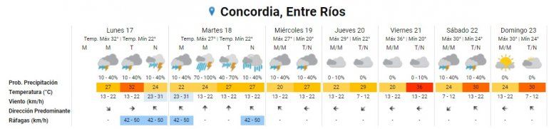 Incluso, de acuerdo al pronóstico extendido, hay probabilidad de lluvias y tormentas aisladas para el viernes y sábado en algunos departamentos de Entre Ríos.