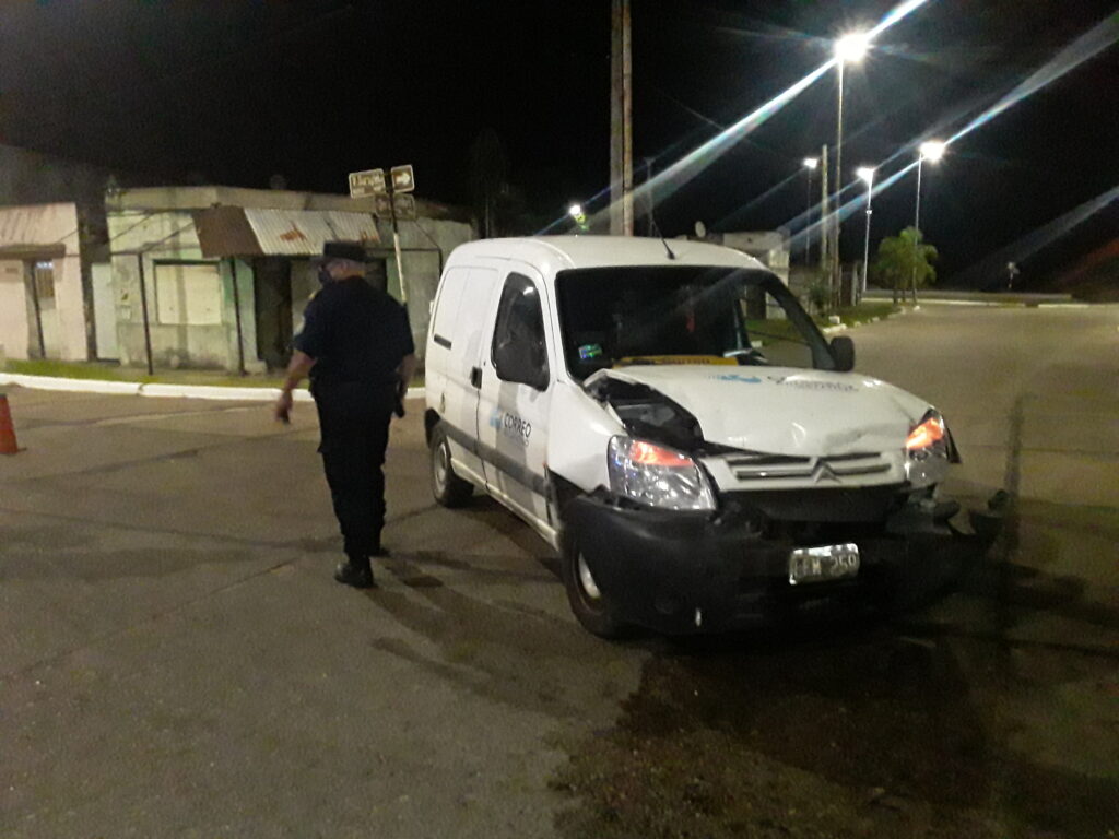 El echo ocurrió cerca de las 20hs del viernes, cuando una camioneta perteneciente a Correo Argentino que circulaba por calle Velez Sarsfiel, embistió a otra camioneta que circulaba por Av. Isthilart de sur a norte, ésta da un trompo producto del impacto y termina chocando a un motociclista que estaba detenido en la esquina. Hasta el lugar llegó personal policial y cabe destacar que no hubo lesionados en el hecho.