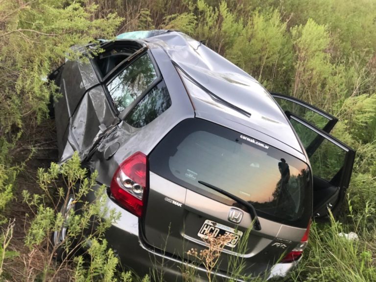 En la oportunidad, de acuerdo a lo informado por la Policía Departamental , un automóvil marca Honda, modelo Fit, por formas y circunstancias que se tratan de establecer, despistó quedando con un daño total sobre la banquina este de la autovía.