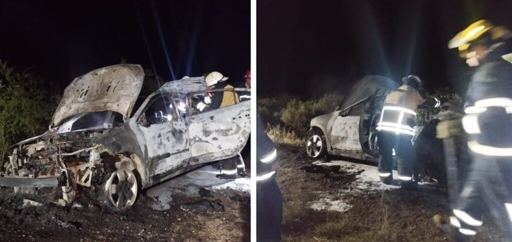 A la medianoche, personal policial intervino en la autovía “José Gervasio Artigas”, alertado por el incendio de un vehículo. El aviso fue realizado por un transeúnte ante funcionarios del puesto caminero de Paso Cerrito. Sobre banquina oeste de ruta nacional 14, en el kilómetro 337, carril norte sur, un Renault, modelo Fluence, sin dominio colocado se había incendiado por completo.
