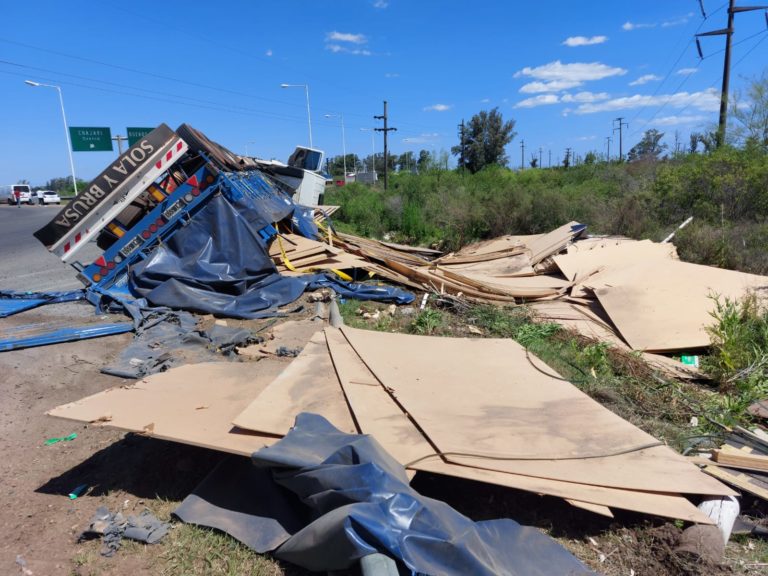 Allí, por razones que se tratan de establecer, volcó un camión marca Volkswagen, modelo 19.320E, color blanco, con acoplado, cargado con placas de madera, de la Empresa Demisones SRL.