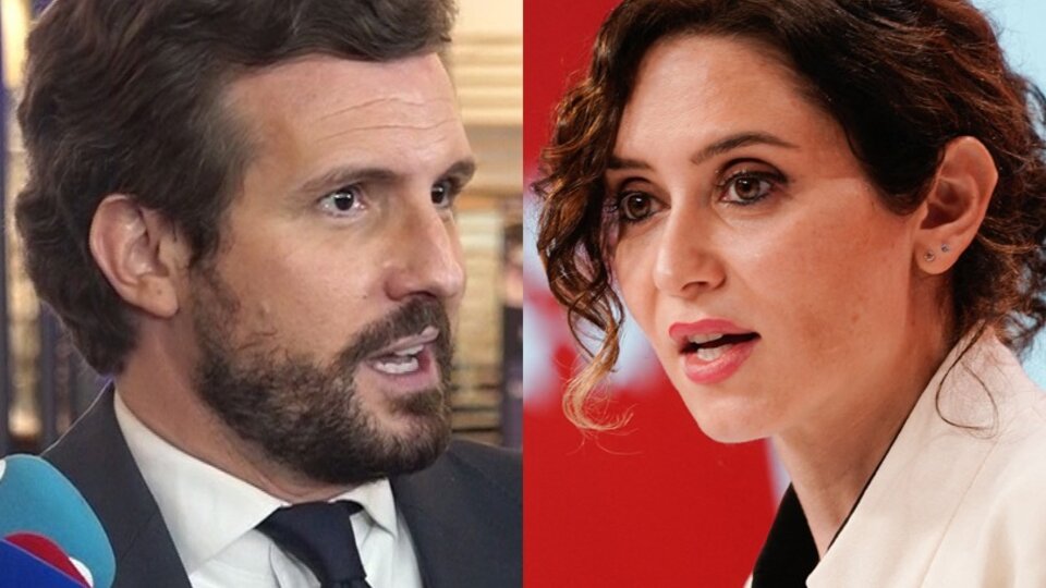 De un lado, el presidente nacional del Partido Popular (PP), Pablo Casado, líder de la oposición, que sueña con sacar a Pedro Sánchez del Palacio de La Moncloa; del otro, la presidenta de la Comunidad de Madrid, Isabel Díaz Ayuso, la política con más respaldo popular de la derecha española. Uno de los dos tendrá que marcharse.