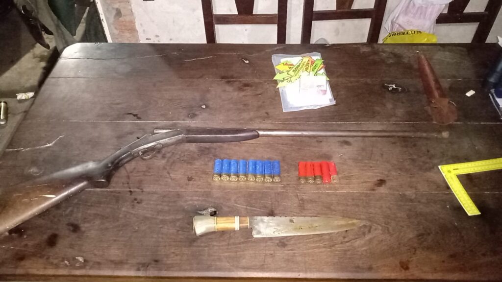 Alrededor de las 05:00 horas, se recepcionó un llamado de vecinos dando cuenta de una situación de violencia en un domicilio de calle Federación , donde se escuchaban gritos de un hombre hacia una mujer y un posible disparo de arma de fuego. El personal ingresó al domicilio, y persuadió al hombre, que dejara el arma sobre la mesa, tratándose de una escopeta 16 HARRINGTON, asimismo un cuchillo tipo facón, y un bidón de plástico que contenía lo que parecía algún tipo de combustible. Además se hallaron cartuchos de escopeta calibre 12 y 16, y una vaina servida, en el patio.