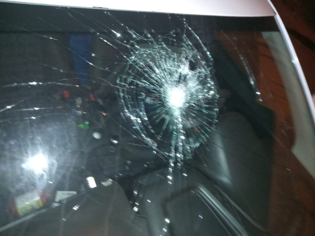 Está persona a la vez arroja piedras contra el Personal interviniente, por lo que solicitan apoyo y llegan inmediatamente Funcionarios de Comisaría Tercera, logrando llegar el masculino hasta los pasillos del barrio El Toronjal, lugar donde es detenido a pesar de la resistencia de los vecinos a su detención.no sin antes romper de un piedrazo el parabrisas de uno de los Móviles.