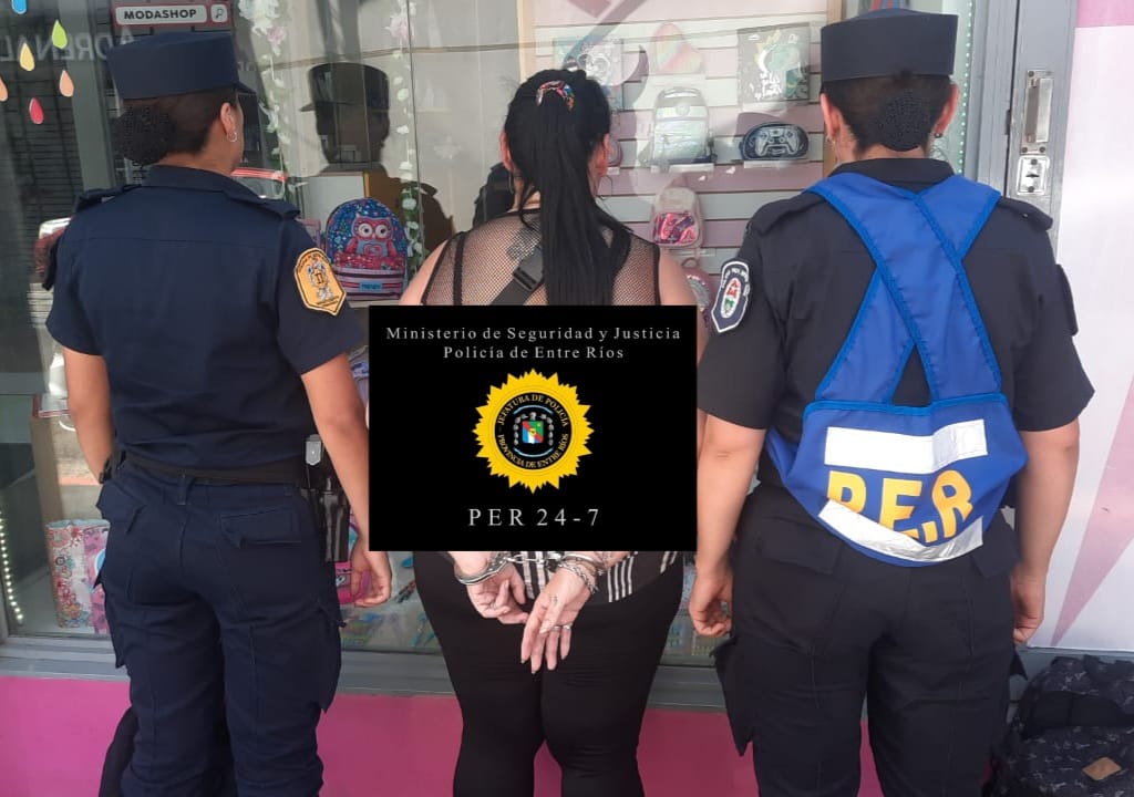 En horas del mediodía de este sábado Personal Policial Femenino de Facción en zona céntrica de la Ciudad, procedió en calle Entre Ríos y Corrientes a demorar a una mujer que momentos previos había ingresado a dos locales de la Peatonal para sustraer mercaderías.