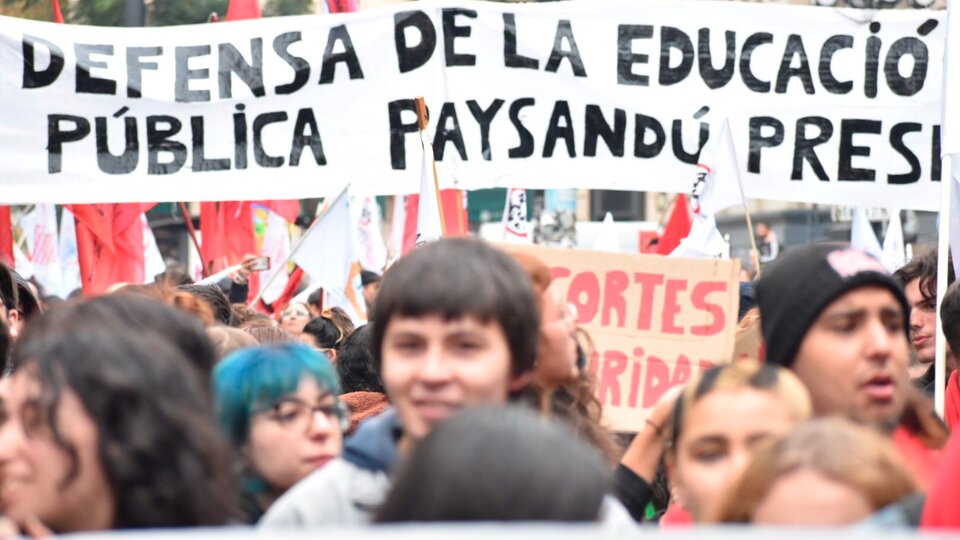 Miles de docentes, estudiantes y sindicatos llevaron adelante este miércoles un paro de 24 horas que incluyó una movilización por la principal avenida de Montevideo en contra de la política educativa del gobierno uruguayo. La medida estuvo enmarcada en el conflicto que los gremios mantienen con el Ejecutivo de Luis Lacalle Pou, al entender que está llevando adelante un ajuste en el presupuesto de la educación pública.