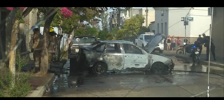En el lugar por causas que se tratan de establecer se encontraba envuelto en llamas un vehículo Volkswagen Polo afectado en su totalidad.