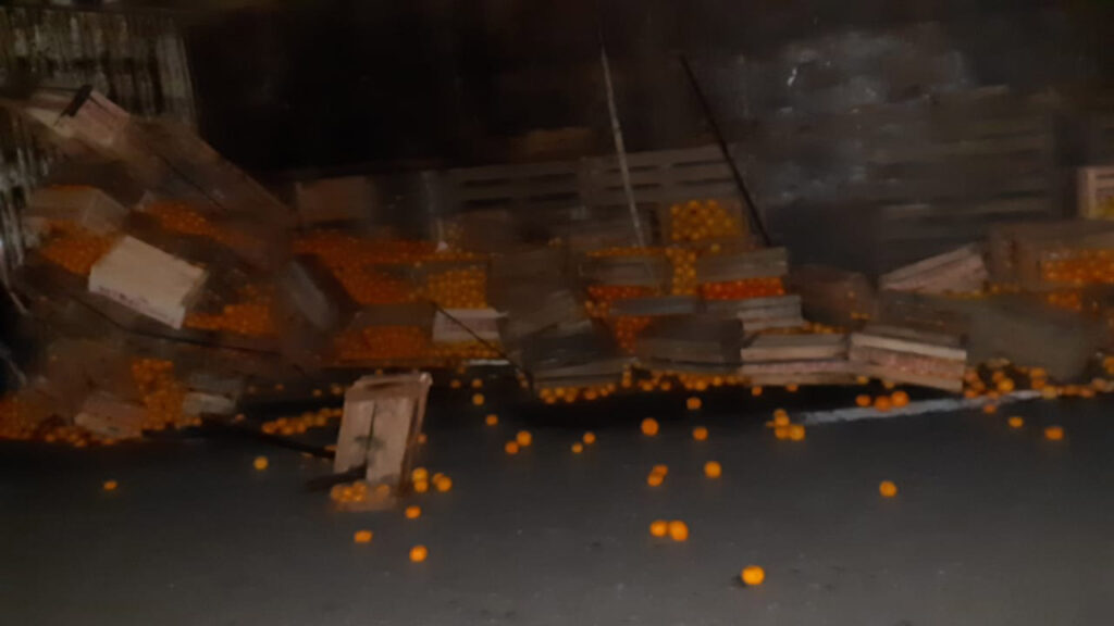 En la noche de este viernes, se produjo el vuelco del acoplado que transportaba cítricos ocurrió en el kilómetro 44 de la Ruta Nacional 14.