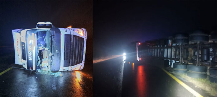 Un camión de volcó en horas de la madrugada del jueves, sobre la Autovía Gervasio Artigas, cuando el conductor (oriundo de Brasil) se durmió al volante, cerca de la ciudad de Chajarí.