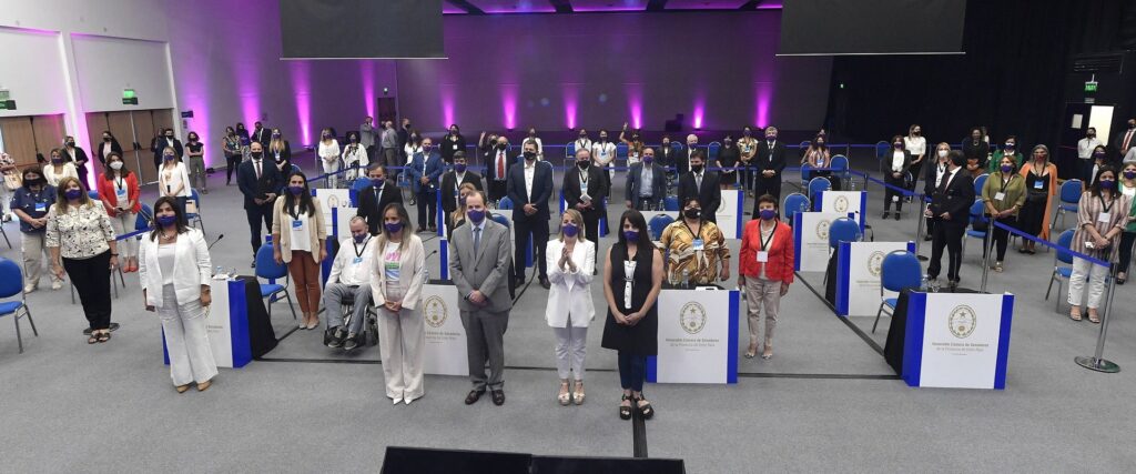 Estuvieron presentes el gobernador Gustavo Bordet, el presidente de la Cámara de Diputados Ángel Giano, la ministra de Romero, la diputada nacional Carolina Gaillard, la titular del INADI Victoria Donda la presidenta de Agua y Saneamientos Argentinos S.A., Malena Galmarini y la ministra de Mujeres, Género y Diversidades Elizabeth Alcorta (de forma virtual).
